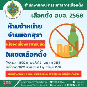 สำคัญ! ตามกฎหมาย ห้ามขาย จำหน่าย จ่ายแจก หรือจัดเลี้ยงสุราทุกชนิด ในเขตเลือกตั้ง