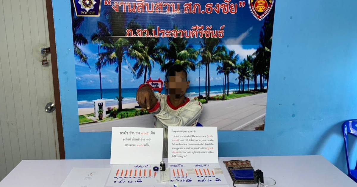 สถานที่จับกุม บริเวณหน้าบ้านไม่มีเลขที่ ม.๒ ต.ธงชัย อ.บางสะพาน จ.ประจวบคีรีขันธ์