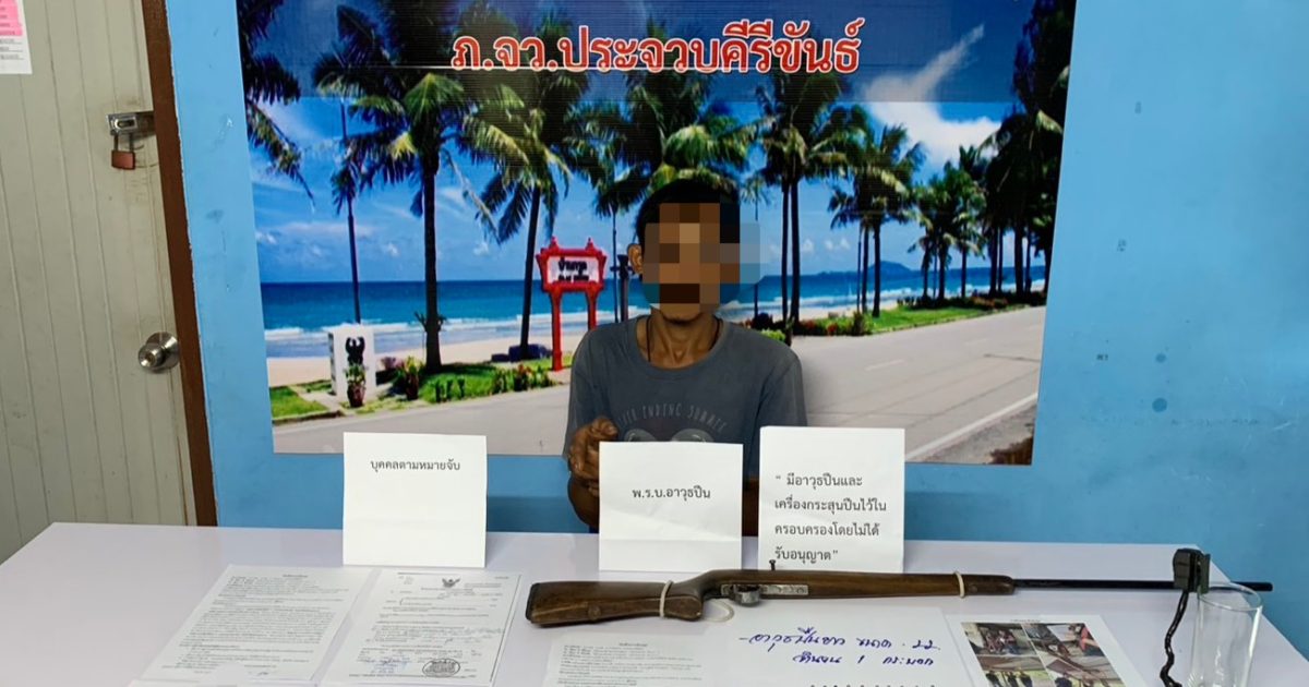 1.อาวุธปืนยาวแบบประดิษฐ์ขึ้นเองขนาด 22 มม. ไม่มีหมายเลขประจำปืนไม่มีหมายเลขทะเบียนปืนจำนวน1กระบอก