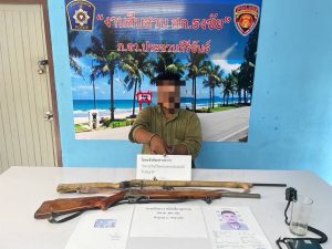 ๒. อาวุธปืนยาว แบบประดิษฐ์ขึ้นเอง ขนาด .๒๒ มม. ไม่มีหมายเลขประจำปืน ไม่มีหมายเลขทะเบียนปืน