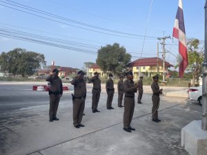 🔸เคารพธงชาติ สวดมนต์ และชี้แจงข้อราชการ ก่อนปล่อยแถวปฏิบัติหน้าที่ ต่อไป