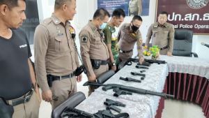 ผกก.สภ.ธงชัย ตรวจสอบอาวุธปืนของทางราชการที่ข้าราชการตำรวจใช้ปฏิบัติหน้าที่
