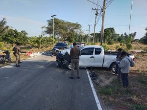 16 มกราคม 2568 เวลา 08.30 น. ร.ต.ท.ปิติกร อาสนะ รอง สว.(สอบสวน)สภ.ธงชัย พนักงานสอบสวนเวร ได้รับแจ้ง รถยนต์ชนกับรถยนต์ ม.3 ต.ธงชัยฯ ไม่มีผู้บาดเจ็บ ตกลงกันไม่ได้ จึงได้ไปตรวจสอบสถานที่เกิดเหตุ บันทึกภาพที่เกิดเหตุ และนำคู่กรณีมาทำการสอบสวนที่ สภ.เพื่อดำเนินการต่อไป