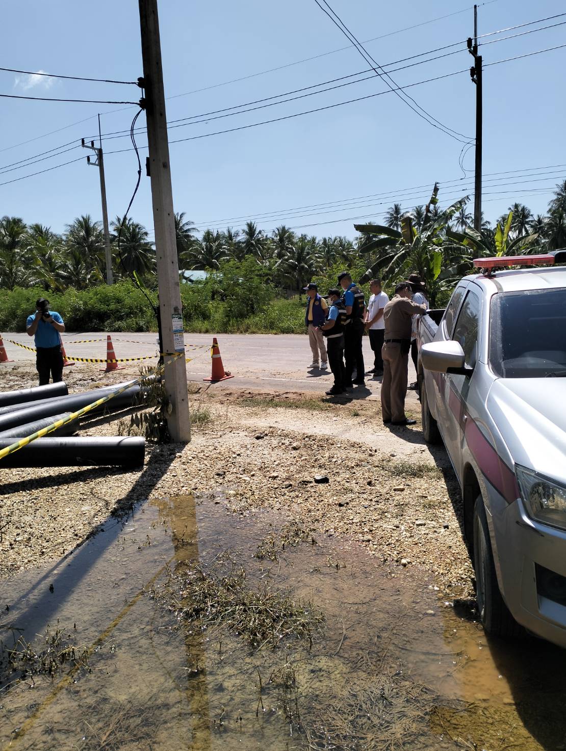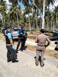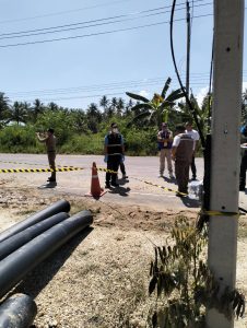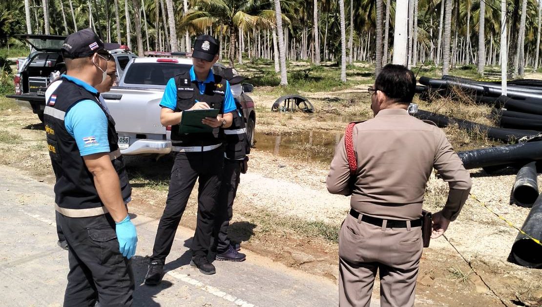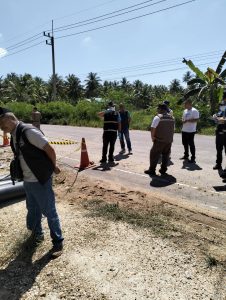 ร.ต.อ.สมชาย ยอดดำเนินกูล พนักงานสอบสวน ร่วมกับเจ้าหน้าที่พิสูจน์หลักฐานประจวบคีรีขันธ์ ร่วมตรวจสถานที่เกิดเหตุเพลิงไหม้ท่อประปา บ้านหนองโปร่ง หมู่ 9 ต.ชัยเกษม อ.บางสะพาน จ.ประจวบคีรีขันธ์
