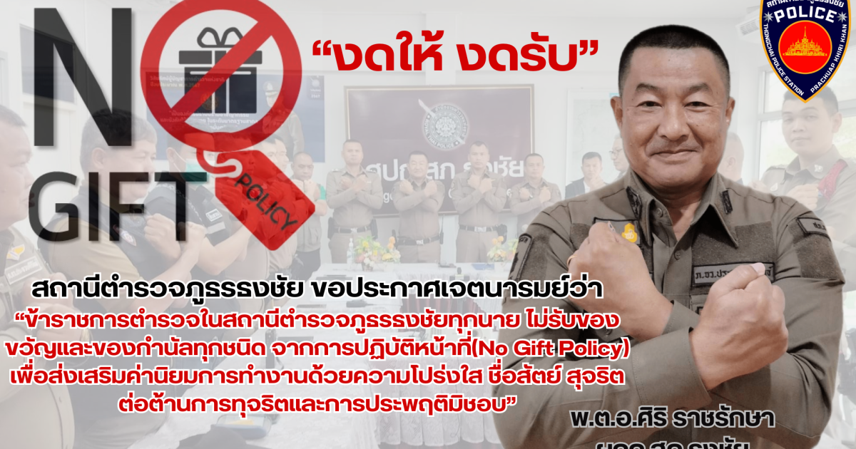 พ.ต.อ.ศิริ ราชรักษา ผกก.สภ.ธงชัย แจ้งประกาศของสถานีตำรวจ เรื่อง การต่อต้านการรับสินบนและไม่รับของขวัญและของกำนัลของหน่วย