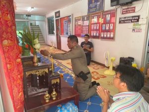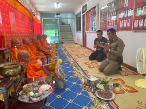 พ.ต.อ.ศิริ ราชรักษา ผกก.สภ.ธงชัย พร้อมข้าราชการตำรวจ สภ.ธงชัย ทำบุญที่ทำการสถานีตำรวจ เนื่องใน”วันตำรวจ พ.ศ.2567″