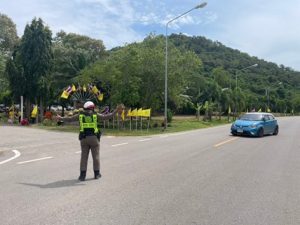 เจ้าหน้าที่ตำรวจจราจรอำนวยความสะดวก พิธีเจริญพระพุทธมนต์ วันเฉลิมพระชนมพรรษา 6 รอบ 28 ก.ค.67