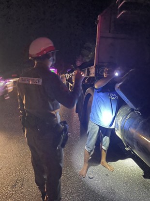 1 ต.ค.67 เวลา 21.30 น. ส.ต.อ.อัษฎาวุฒิ พวกยะ เจ้าหน้าที่ตำรวจจราจร ออกตรวจสอบรถบรรทุกน้ำมันหมด บริเวณหน้าโรงเรียนชัยเกษม ได้ให้การช่วยเหลือ เดินทางต่อไปได้