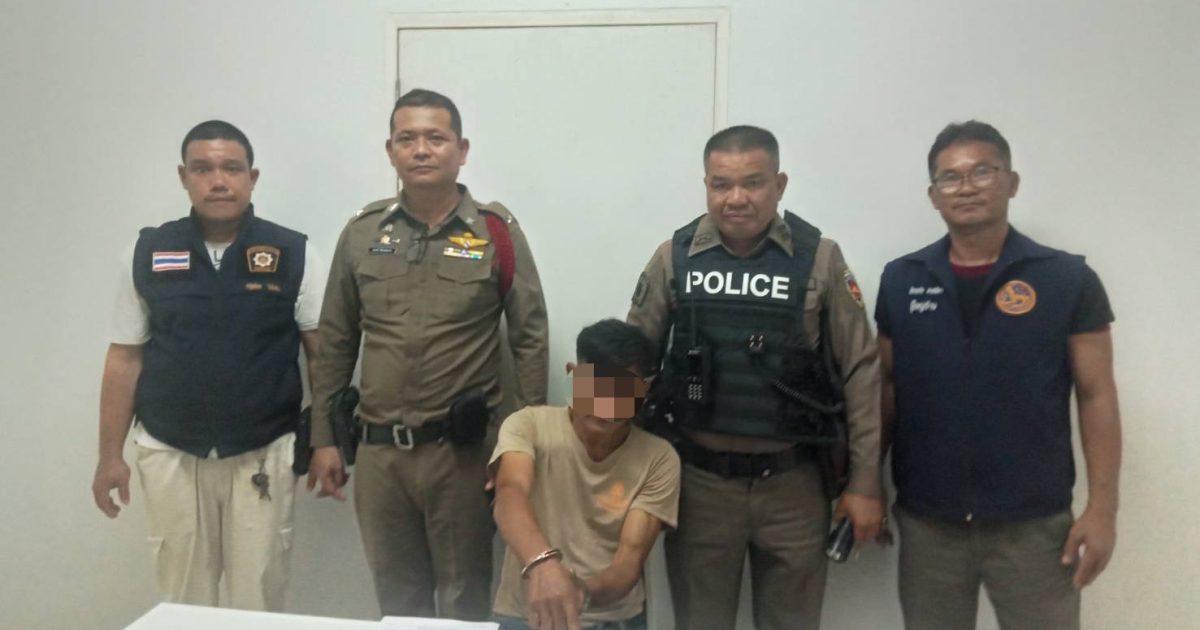 🤝🏻พร้อมด้วยเจ้าหน้าที่ฝ่ายปกครองประกอบด้วยผู้ใหญ่บ้าน ผู้ช่วยผู้ใหญ่บ้าน ชรบ. หมู่ที่ 9 ต.ธงชัย จับกุมผู้ต้องหา พร้อมด้วยของกลาง ยาบ้า จำนวน 5 เม็ด