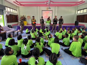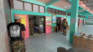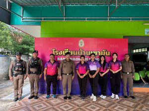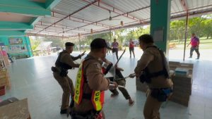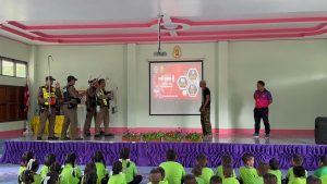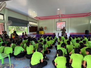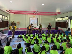 พ.ต.อ.ศิริ ราชรักษา ผกก.สภ.ธงชัย พร้อมด้วยเจ้าหน้าที่ตำรวจ บรรยายให้ความรู้ หัวข้อ“ความปลอดภัยในสถานศึกษา Run Hide Fight หนี-ซ่อน-สู้” โรงเรียนบ้านเขามัน