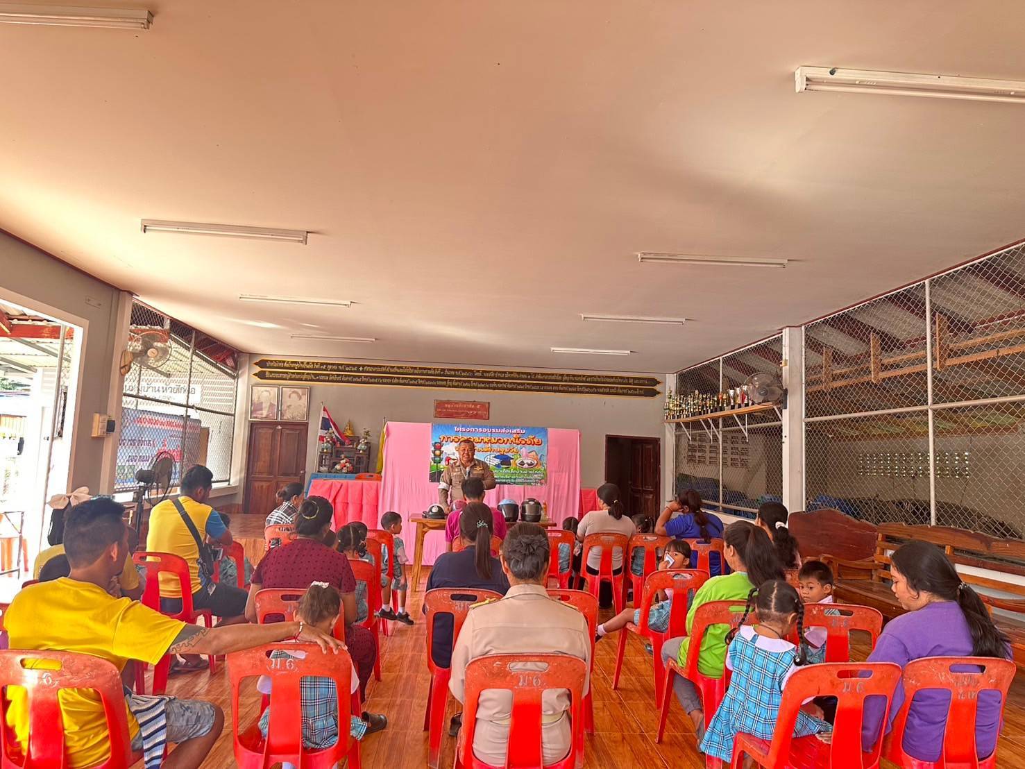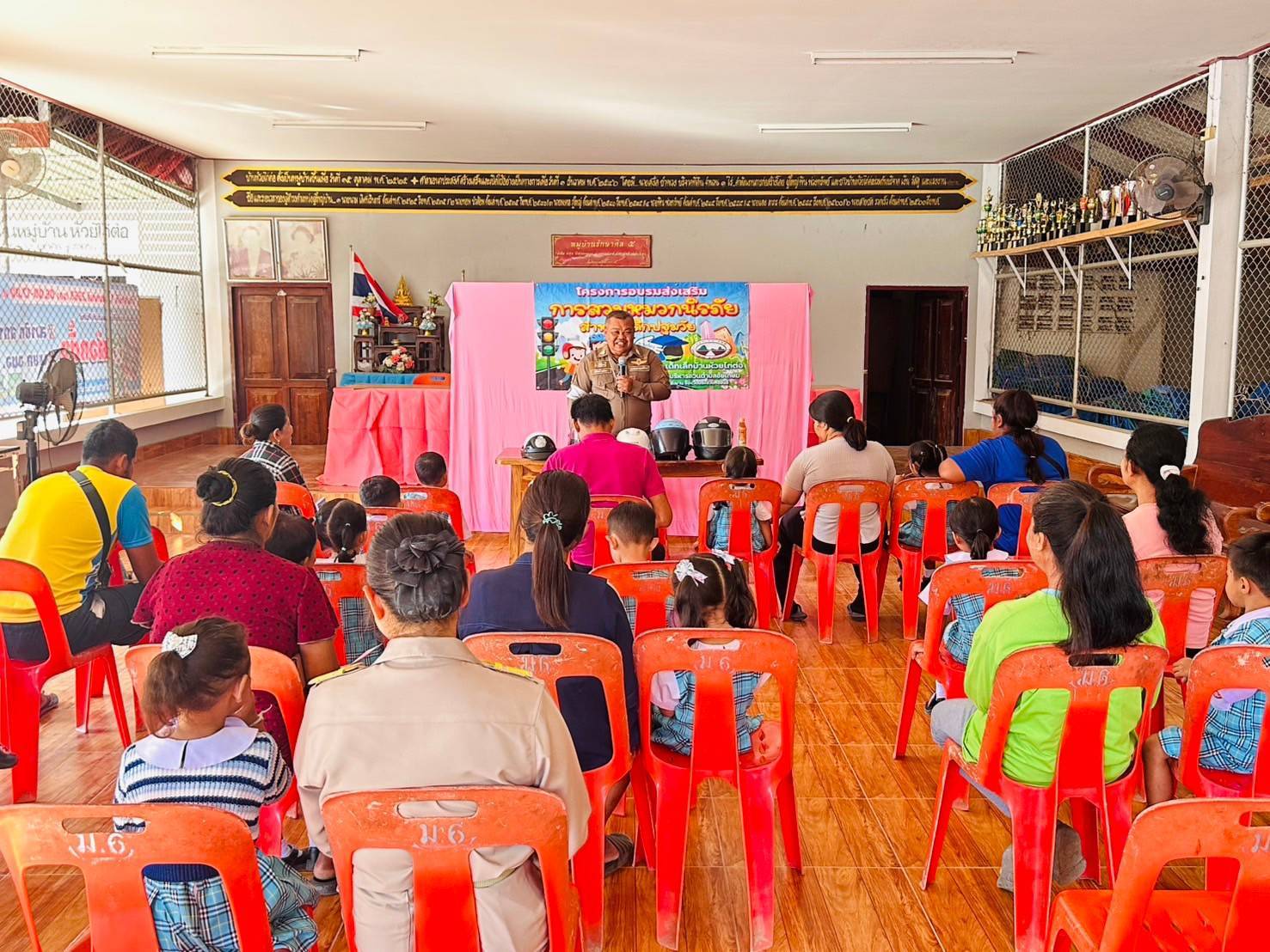 ร.ต.อ.รุ่งโรจน์ พวกยะ รอง สว(ป.)สภ.ธงชัย บรรยายให้ความรู้เกี่ยวกับการสวมใส่หมวกนิรภัยในขณะขับขี่รถจักรยานยนต์ ให้กับผู้ปกครองเด็กนักเรียนปฐมวัย ณ ศูนย์พัฒนาเด็กเล็กบ้านห้วยไก่ต่อ