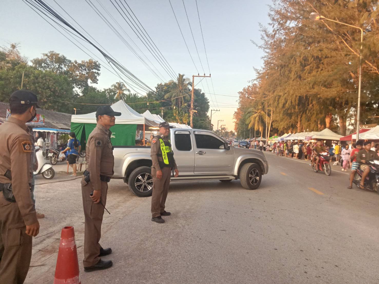 ป้องกันเหตุ และอำนวยความสะดวกการจราจร ถนนคนเดินชายทะเลบ้านกรูด
