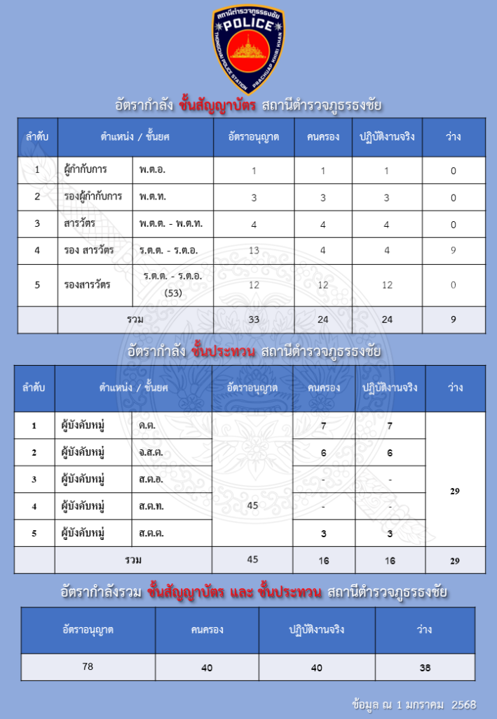 อัตรากำลัง สถานีตำรวจภูธรธงชัย